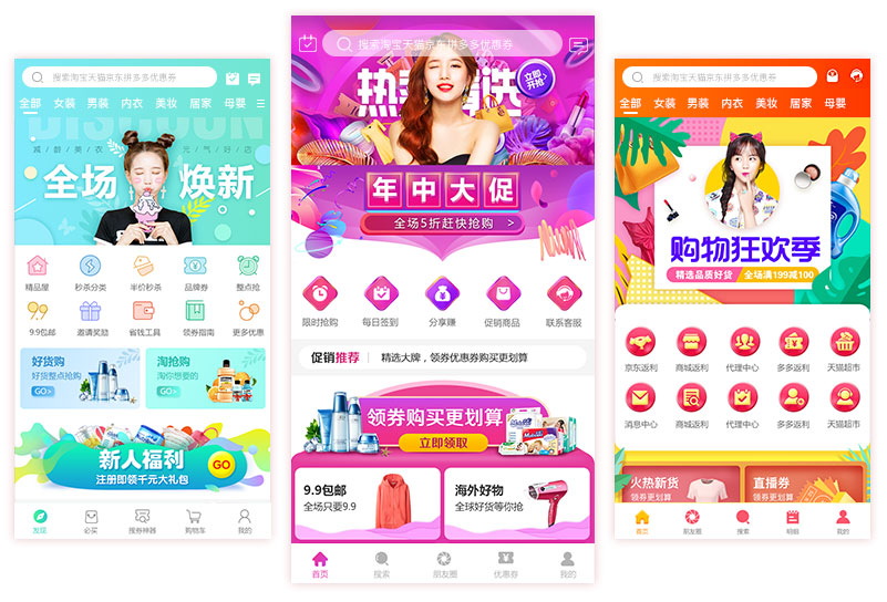 淘宝天猫折扣优惠券、拼多多优惠券、1688严选厂货、大牌尾货、自营招商人工精选等,自动更新,一键推广。